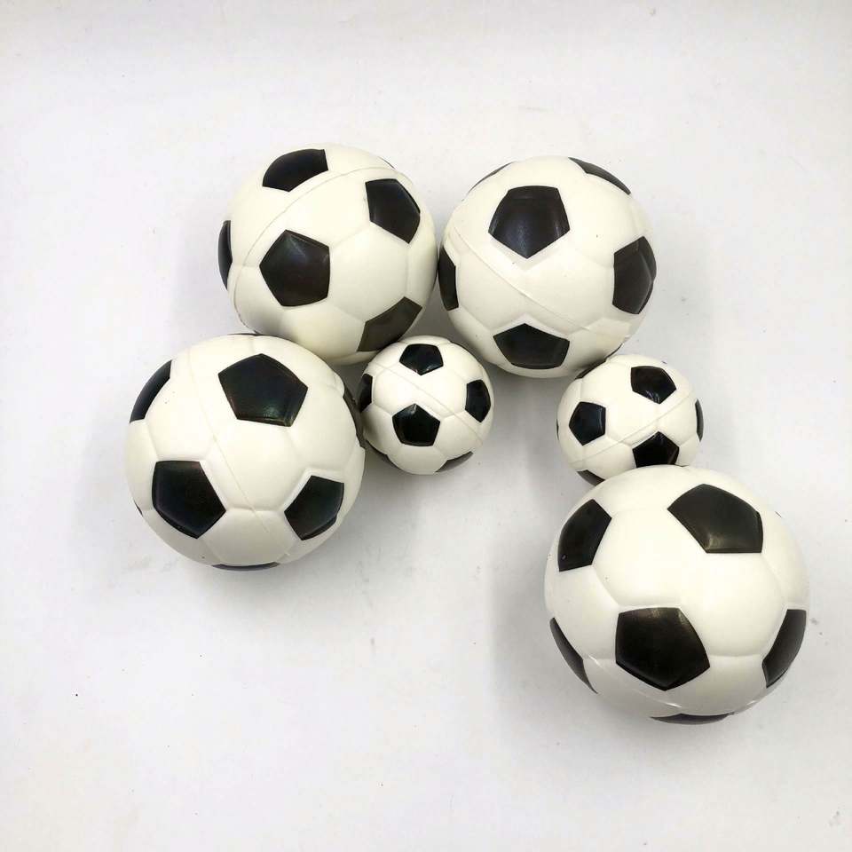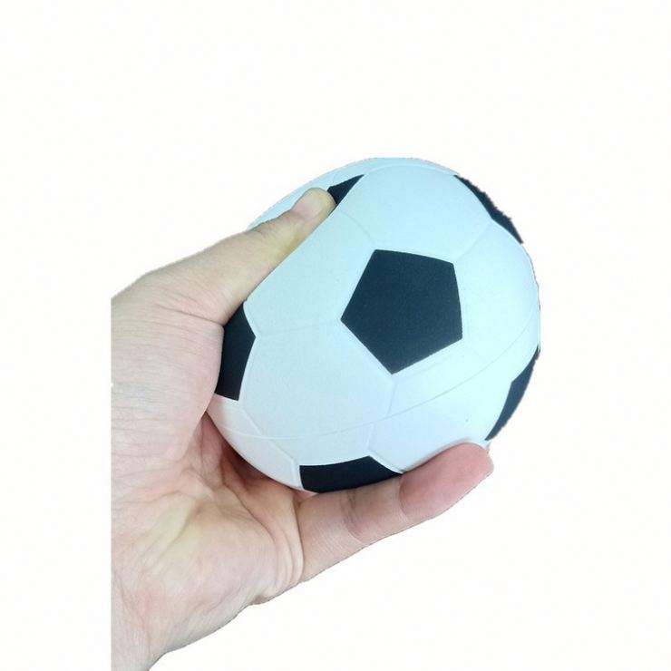 ลูกบอลบีบแก้เครียดขนาดเล็ก พิมพ์โลโก้ได้ รูปทรงฟุตบอล บอล PU ทรงกลม บรรเทาความเครียด ของเล่นพร้อมโลโก้