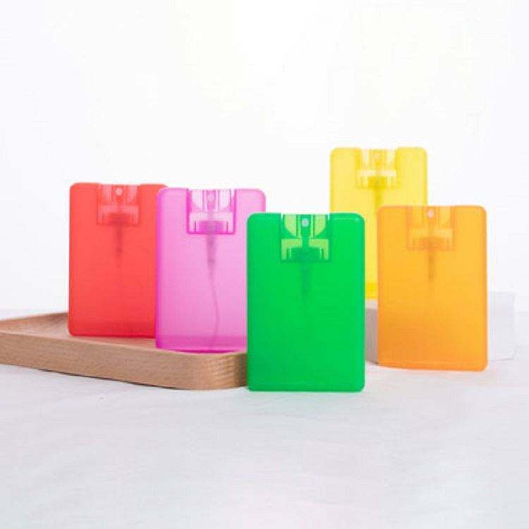 ขวดน้ำหอมพลาสติก PP ทรงสี่เหลี่ยมแบนสเปรย์ละอองน้ำทำให้อากาศสดชื่นแบบพกพาได้โลโก้ออกแบบได้ตามต้องการขนาดเล็ก