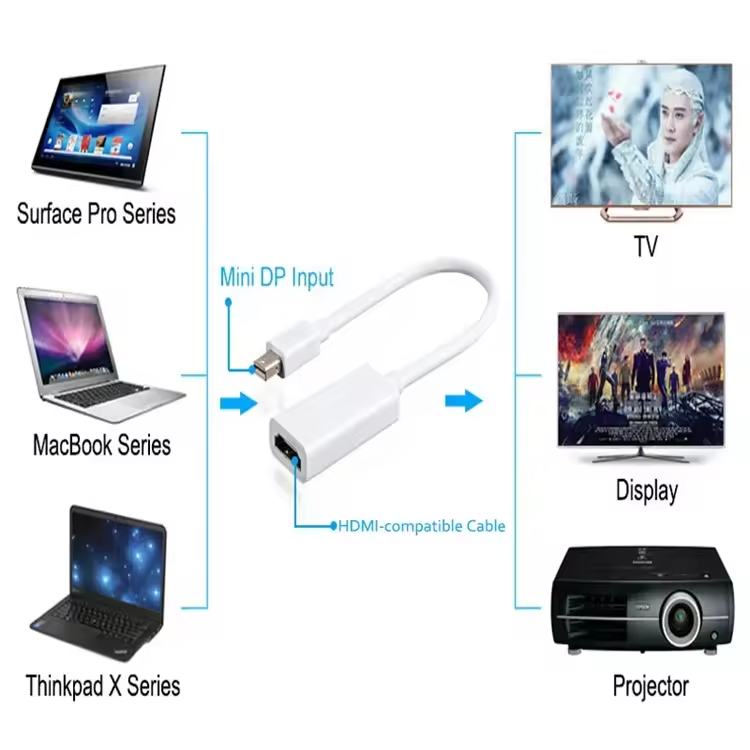มินิ DP เป็น HDMI Converter 4K HD สายอะแดปเตอร์มอนิเตอร์ทีวีแล็ปท็อป