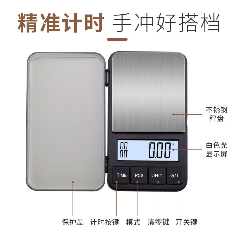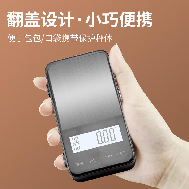 เครื่องชั่งกาแฟดิจิตอลขนาดเล็ก 2 กก. ความแม่นยำ 0.01 กรัม เครื่องชั่งพกพาสำหรับเครื่องประดับ ทองคำ วัสดุยา ใช้งานได้หลากหลาย เหมาะสำหรับการเดินทาง