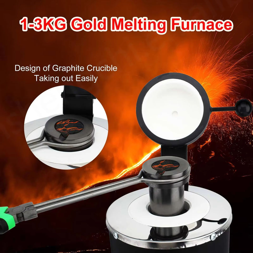 เตาหลอมโลหะอลูมิเนียมดีบุกพร้อมเบ้ากราไฟท์เตาไฟฟ้าดิจิทัลขนาดเล็ก