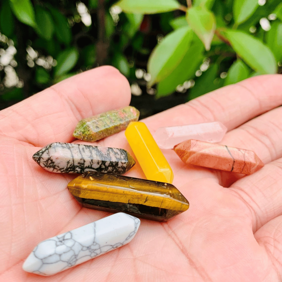 ดินสอคริสตัลสองชั้นขนาดเล็กอัญมณีรักษาธรรมชาติสำหรับการปรับสมดุลพลังงานการทำสมาธิเรกิตกแต่งบ้านและจิตวิญญาณ