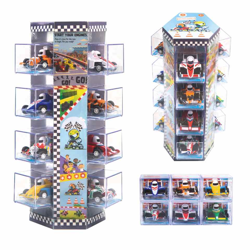ชุดรถแข่งมินิ F1 แบบดึงถอยหลัง ของเล่น 12 ชิ้น บรรจุในกล่องใสพร้อมฐานตั้งโชว์