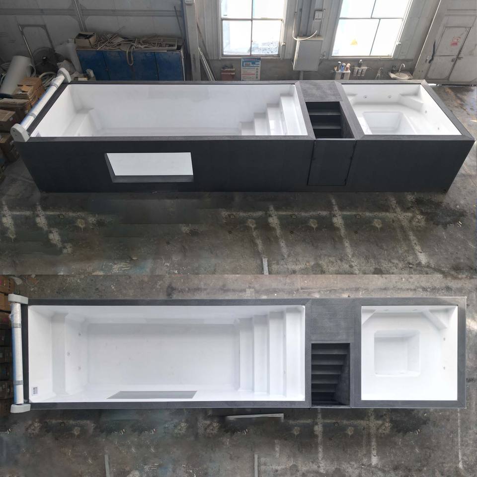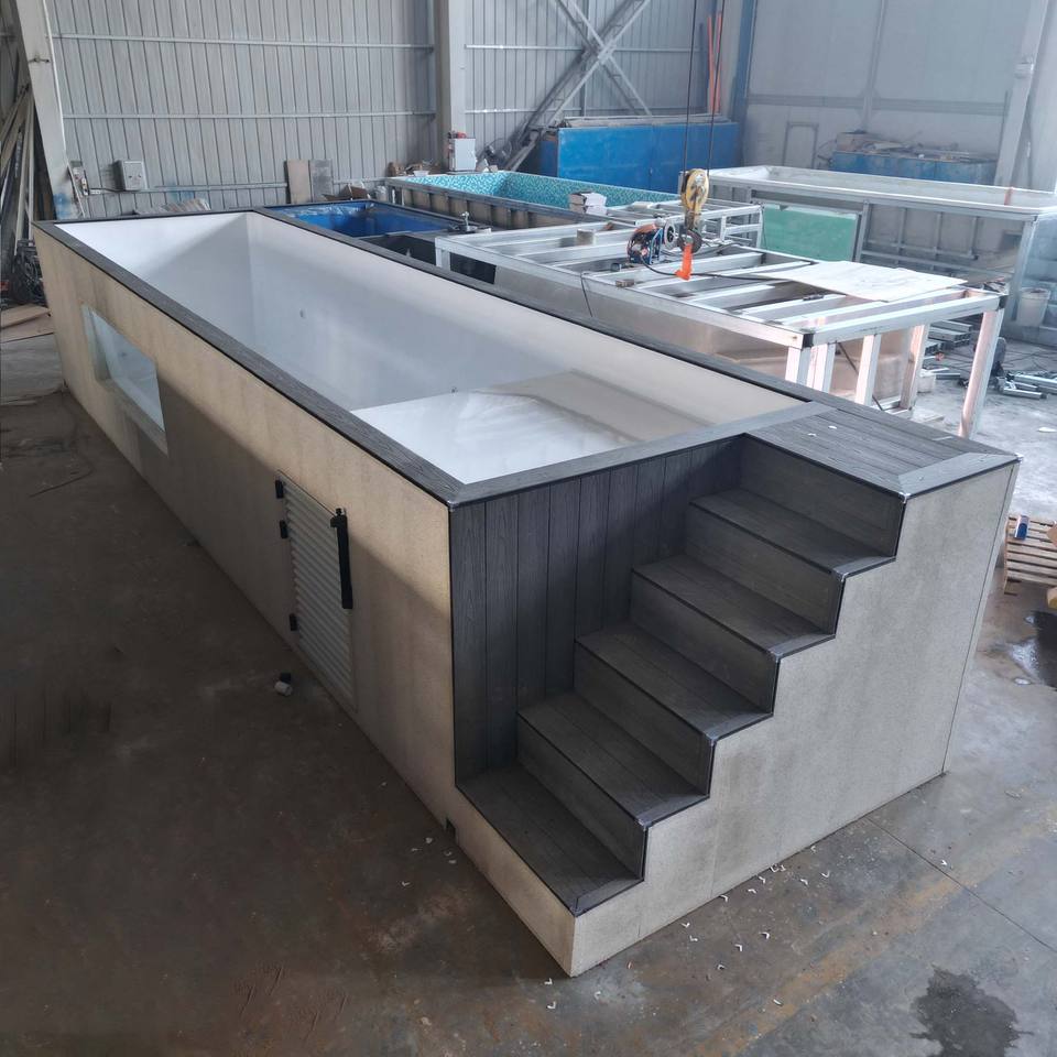สระว่ายน้ำเด็กทรงสี่เหลี่ยมไฟเบอร์กลาสขนาดเล็ก สระว่ายน้ำอะคริลิกใสทันสมัยแบบไร้ขอบ ปรับแต่งได้ ป้องกันรังสียูวี