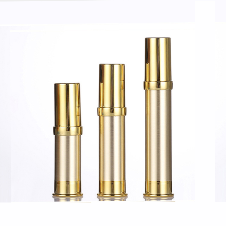 ขวดบรรจุภัณฑ์เครื่องสำอางทรงกระบอกขนาดเล็กสีทองเงินสุดหรู พร้อมหัวปั๊มพลาสติกสำหรับโลชั่น ครีม และผลิตภัณฑ์แบบสุญญากาศ