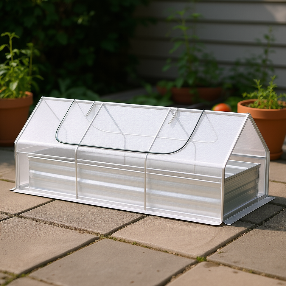 โรงเรือนขนาดเล็ก 8.6 x 3 x 1 ฟุต โครงเหล็กชุบสังกะสี พร้อมฝาครอบแปลงปลูกยกสูง สำหรับปลูกสมุนไพร ผัก ระเบียงบ้าน สวน