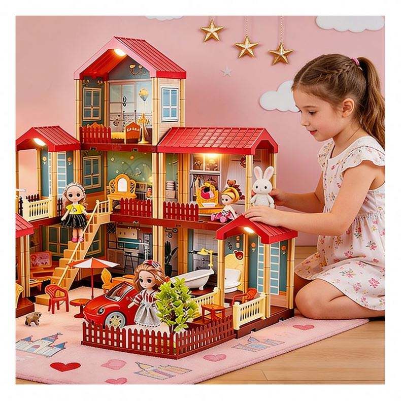 ชุดบ้านตุ๊กตาจิ๋ว DIY พร้อมเฟอร์นิเจอร์และอุปกรณ์เสริม ของขวัญโมเดลพลาสติกสร้างสรรค์สำหรับเด็กอายุ 5 ถึง 7 ปี