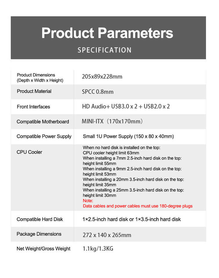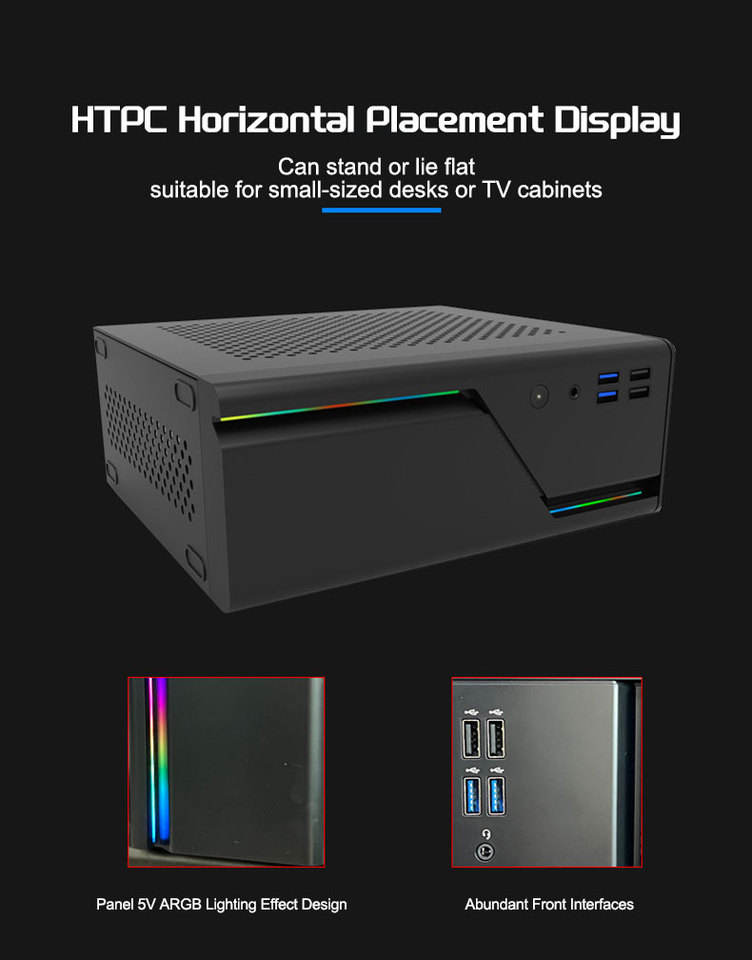 เคสมินิ ITX HTPC เดสก์ท็อป5V arBB แผงด้านหน้า4พอร์ต USB แหล่งจ่ายไฟ1U สนับสนุนการเล่นเกมคอมพิวเตอร์4K-for การออกแบบที่กะทัดรัด ITX