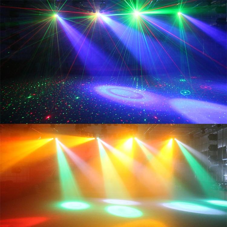 Feature:3 fixtures in 1 light: Moonfower+Strobe+Laser effect!