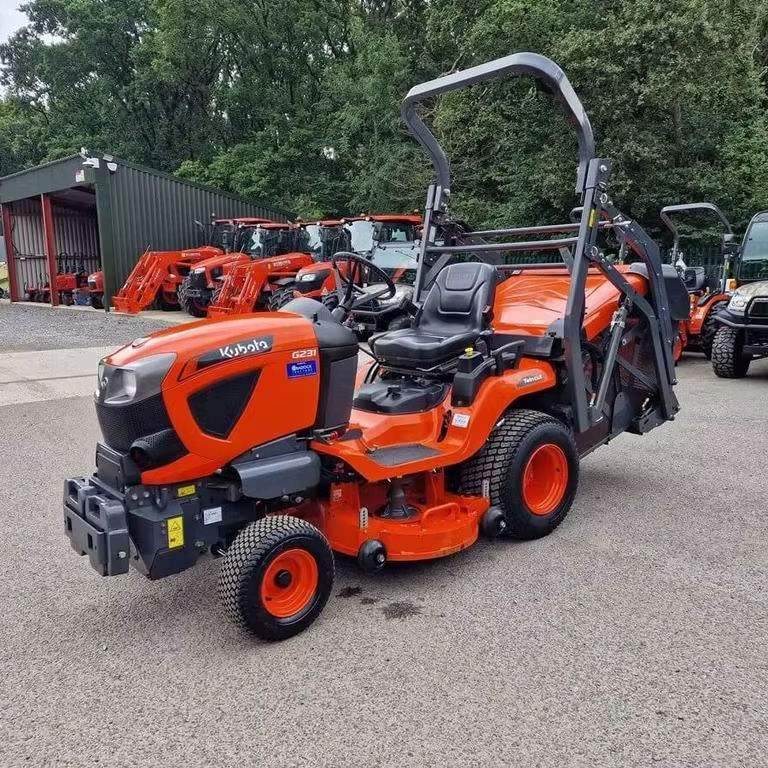 เครื่องตัดหญ้าแบบนั่งขับ Mini Kubota G231 HD พร้อมมอเตอร์และเกียร์คุณภาพสูงสำหรับใช้งานในสวนและฟาร์ม มีจำหน่ายในราคาประหยัด