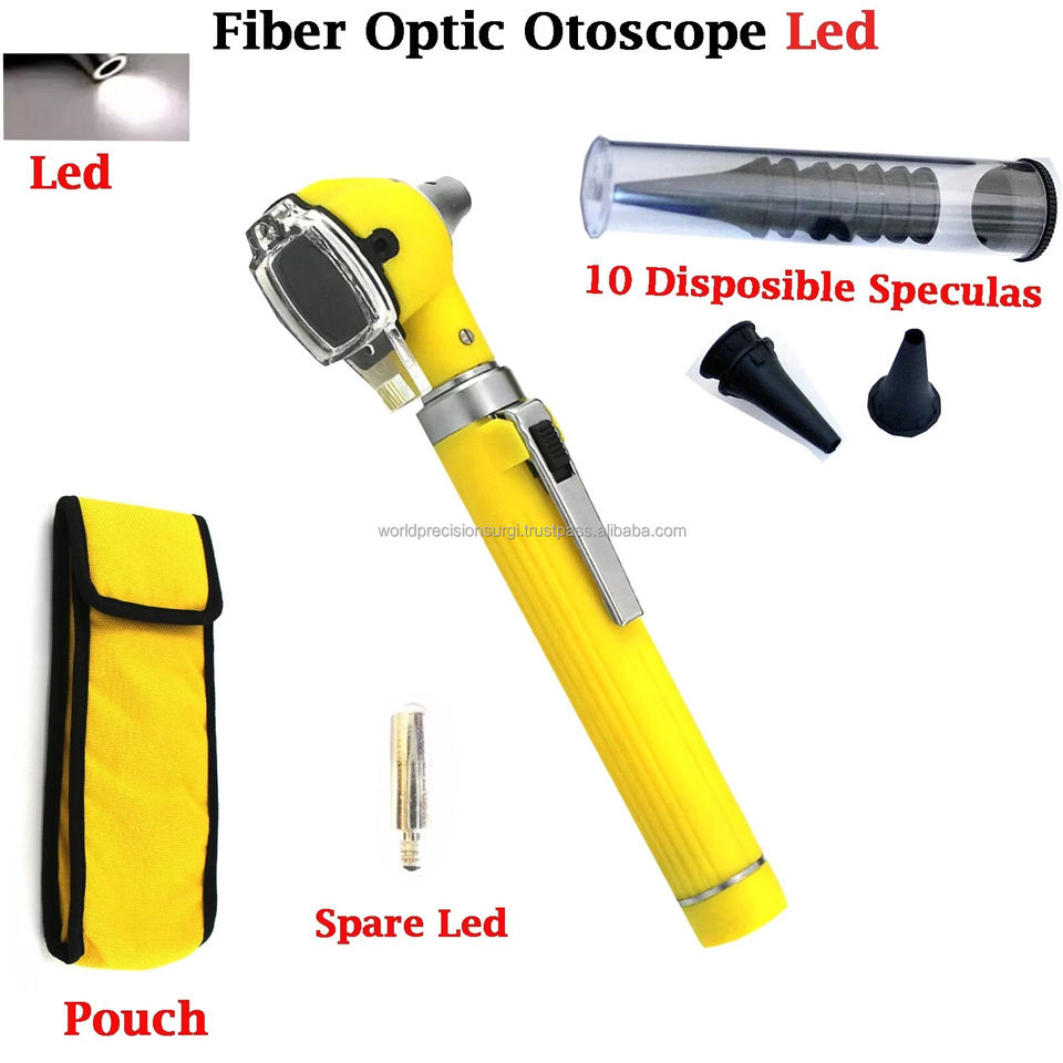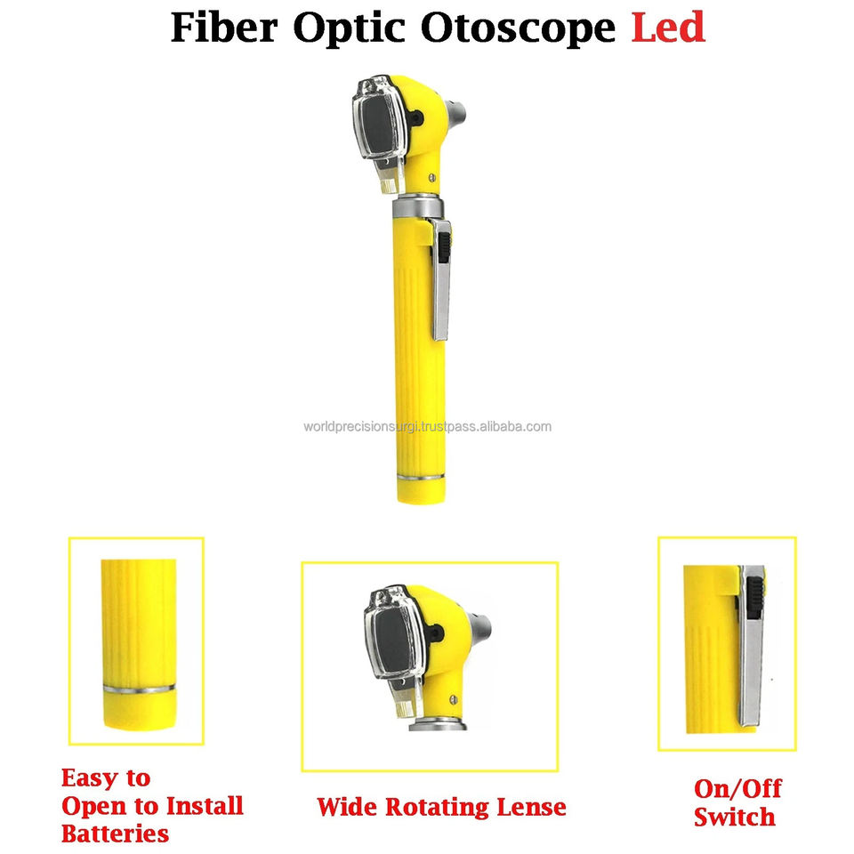 ชุดอุปกรณ์ตรวจหูแบบไฟเบอร์ออปติกขนาดเล็กแบบพกพา สีเหลือง ได้รับการรับรองมาตรฐาน CE ระดับ II และ ISO13485 ขนาด 150 มม.