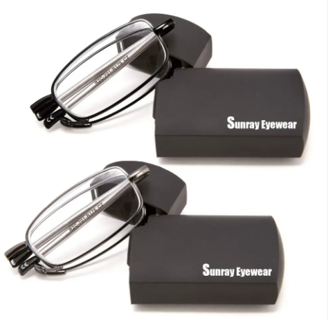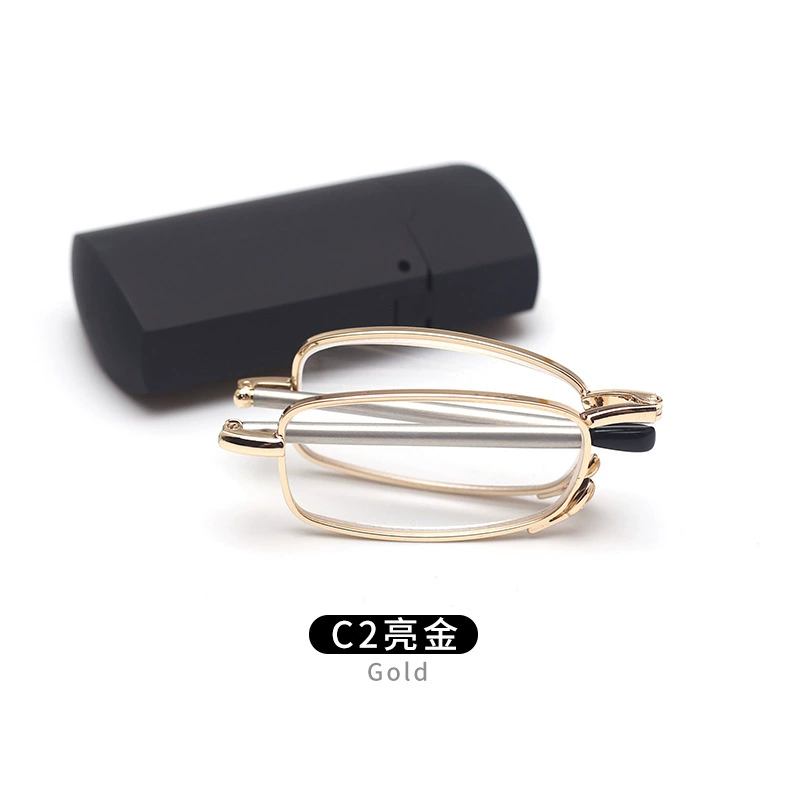 แว่นอ่านหนังสือพับได้ทำจากโลหะขนาดเล็กพกพาได้กรอบสีดำใสสีขาววัสดุ PC พร้อมกล่องกันแสงสีฟ้าสำหรับทุกเพศ