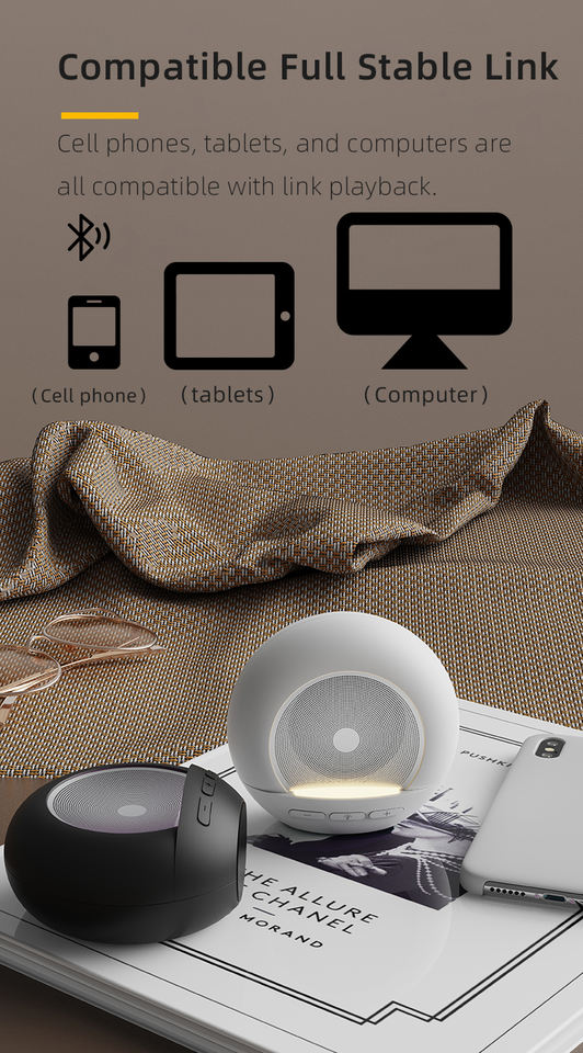 ไฟกลางคืนรูปพระจันทร์ขนาดเล็ก RGB Ambient 5w ลำโพงบลูทูธไร้สายแบบพกพา รองรับ FM และ TF Memory