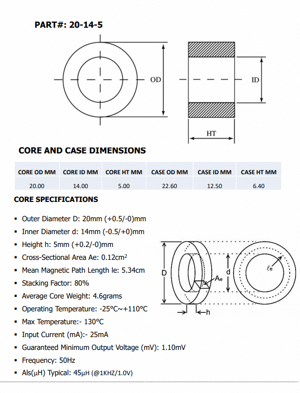 การเหนี่ยวนำความอิ่มตัว:1.2 ที่ 50Hz