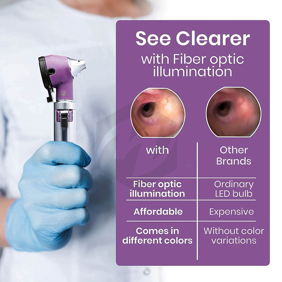Mini Otoscope Portable Ear Light and Exam Kit 3X Magnifying Fiber Optic Scope with Spare Tips Replacement Bulb and Protective