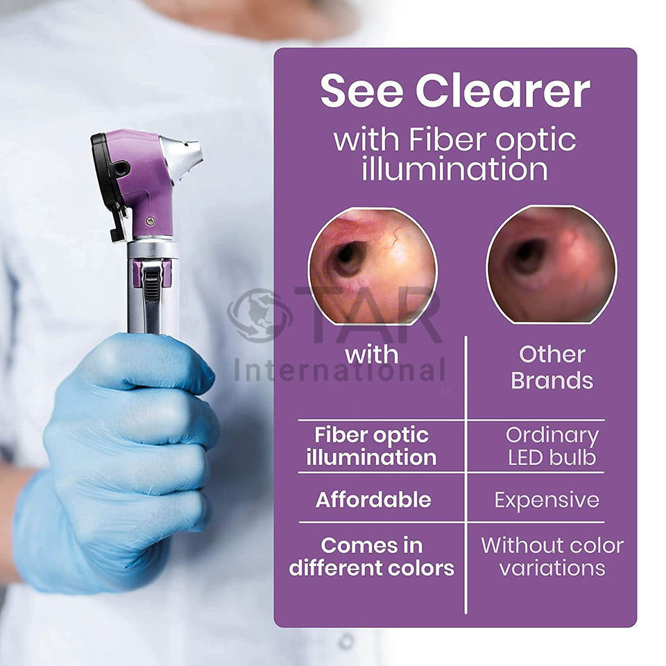 กล้องตรวจหูแบบพกพาขนาดเล็ก พร้อมชุดอุปกรณ์ตรวจหู ไฟส่องหูแบบไฟเบอร์ออปติกกำลังขยาย 3 เท่า พร้อมหัวเปลี่ยนสำรอง และหลอดไฟสำรองสำหรับป้องกัน
