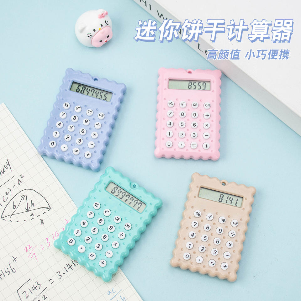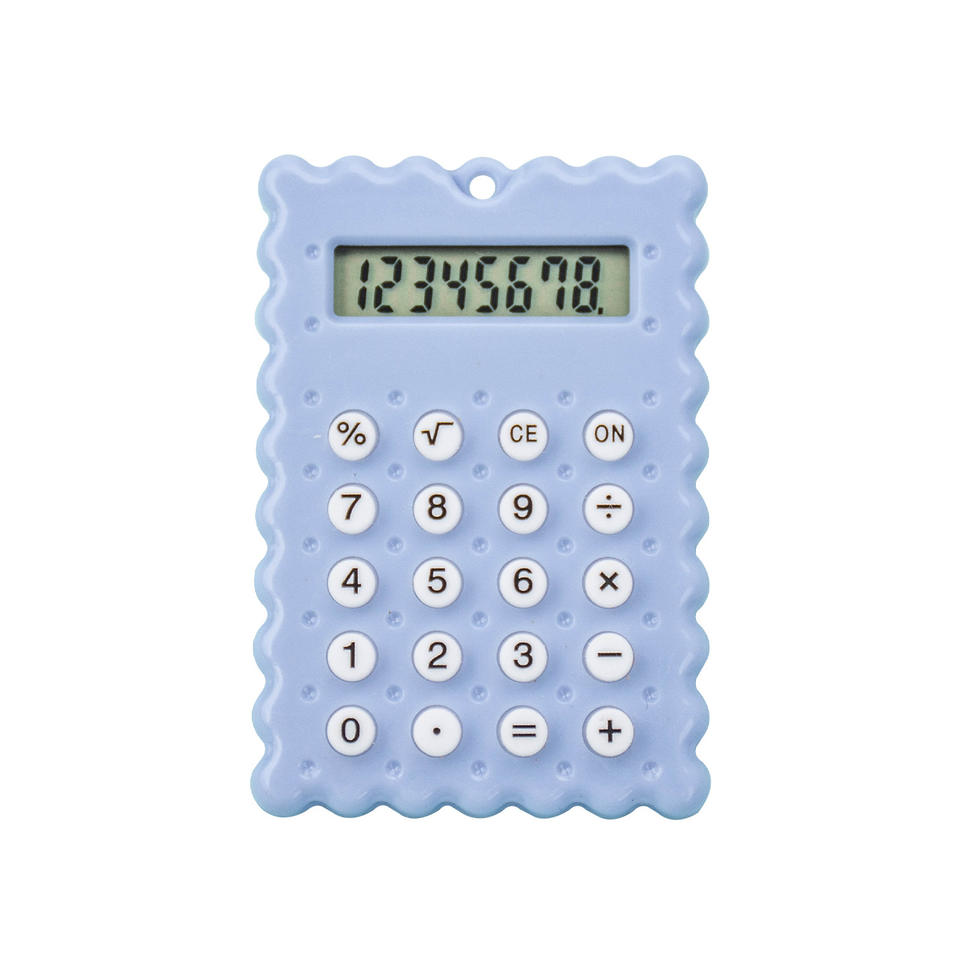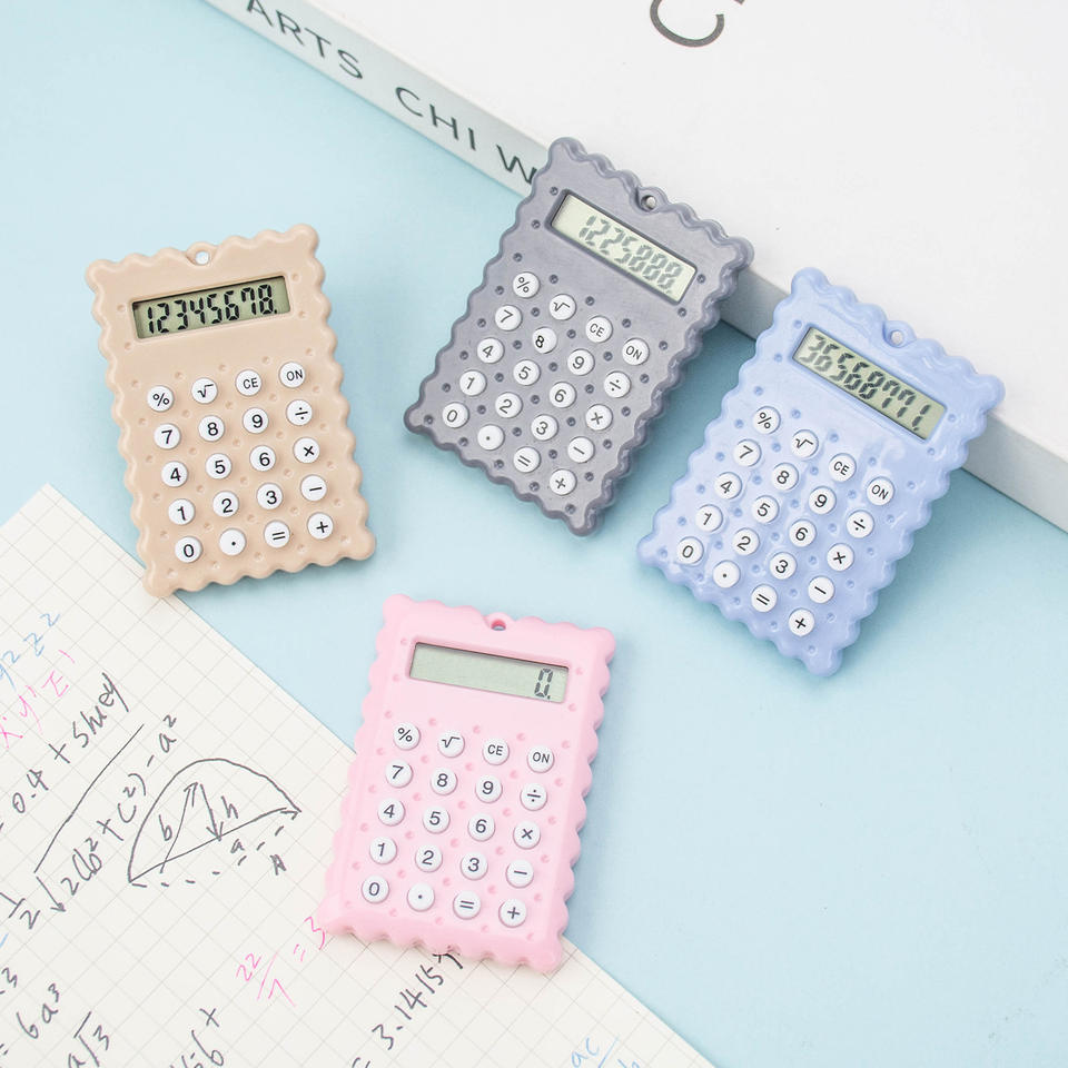 เครื่องคำนวณจี้ขนาดเล็กสีชมพูฟ้าเทาสีผิว ABS ใช้แบตเตอรี่แบบพกพาสำหรับนักเรียน