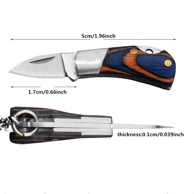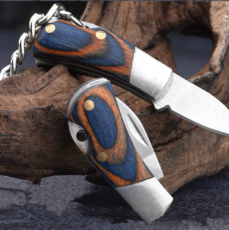 มีดพกพาขนาดเล็ก ด้ามไม้พับได้ พร้อมพวงกุญแจ