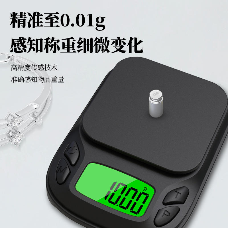เครื่องชั่งเครื่องประดับดิจิตอลแบบพกพาขนาดเล็ก 0.01 กรัม เครื่องชั่งน้ำหนักอิเล็กทรอนิกส์ที่มีความแม่นยำสำหรับทองคำและสิ่งของขนาดเล็กรูปทรงสี่เหลี่ยมผืนผ้า