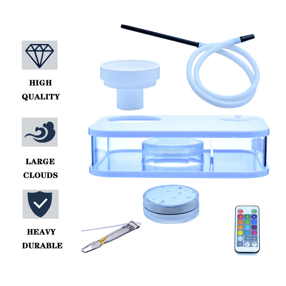ชุดบารากุพกพาขนาดเล็ก รูปทรงสี่เหลี่ยม พร้อมไฟ LED ท่อซิลิโคน สำหรับเดินทาง รถยนต์ กลางแจ้ง ชายหาด ดาดฟ้า แคมป์ปิ้ง สวน ปาร์ตี้ ชิชา