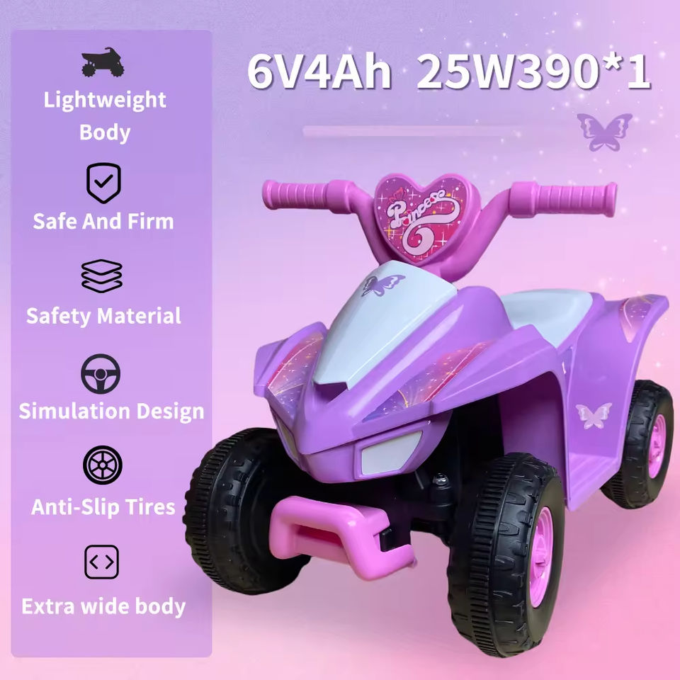 รถเอทีวีไฟฟ้าสำหรับเด็กสีชมพู มินิปรินเซส รถของเล่นเด็กสี่ล้อ ขับเคลื่อนด้วยแบตเตอรี่ สำหรับเด็กอายุ 2 ถึง 4 ปี