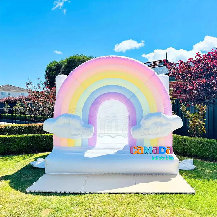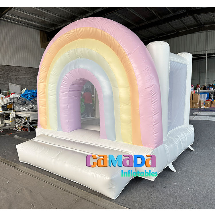 ปราสาทเป่าลมสีรุ้งขนาดเล็ก8ฟุต/10ft ปรับแต่งได้วัสดุป้องกันรังสียูวีกันน้ำดีไซน์แบบพกพา2ปี