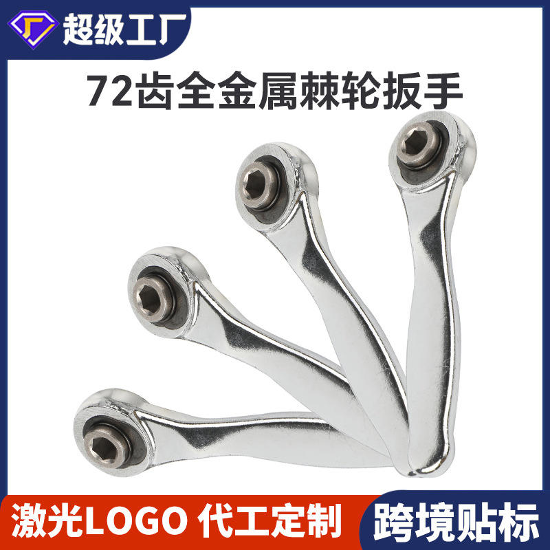 ประแจวงล้อขนาดเล็ก 72 ฟัน หัวหกเหลี่ยม เมตริก ปลายเดี่ยว เหล็กโครเมียมวาเนเดียม ขัดเงาอย่างดี ชุดเครื่องมือพกพา