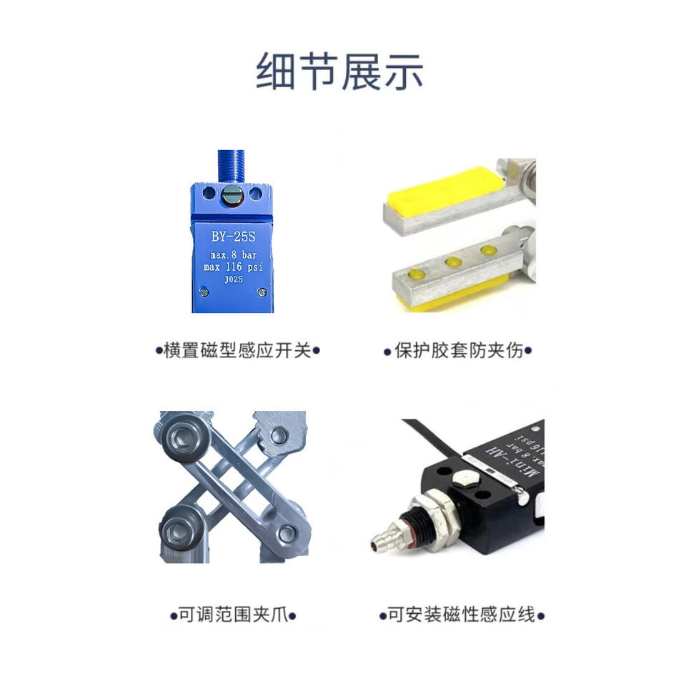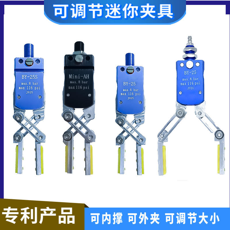 กริปเปอร์แขนหุ่นยนต์ขนาดเล็กพร้อมข้อต่อปรับได้และตัวตรวจจับแม่เหล็ก BY-25S มีตัวเลือกการรองรับทั้งด้านในและด้านนอก