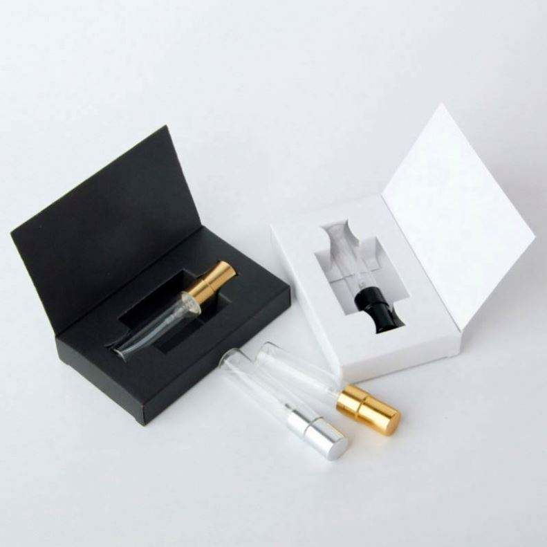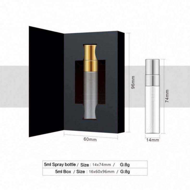 ขวดสเปรย์แก้วใสขนาดเล็ก 2 มล. 3 มล. 5 มล. 10 มล. สำหรับใส่ตัวอย่างน้ำหอมแบบพกพา พร้อมกล่องกระดาษ