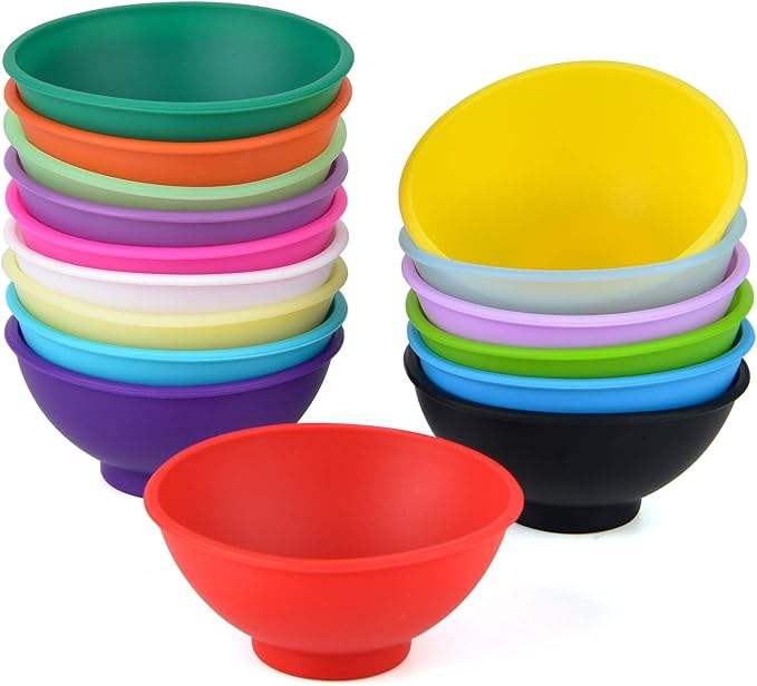 ชามใส่ขนมขบเคี้ยวทนความร้อนมินิทำจากซิลิโคนแบบหนีบชามใส่ขนมหลากสีไม่แตกหักยืดหยุ่น1.75ออนซ์