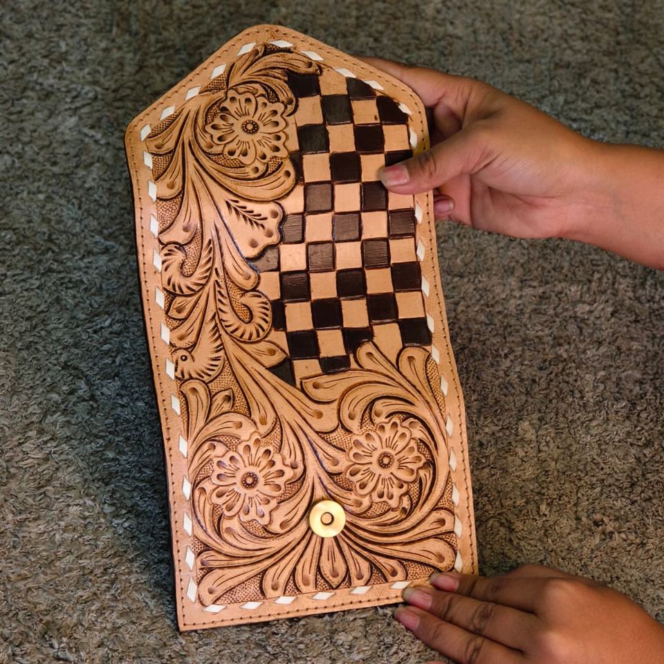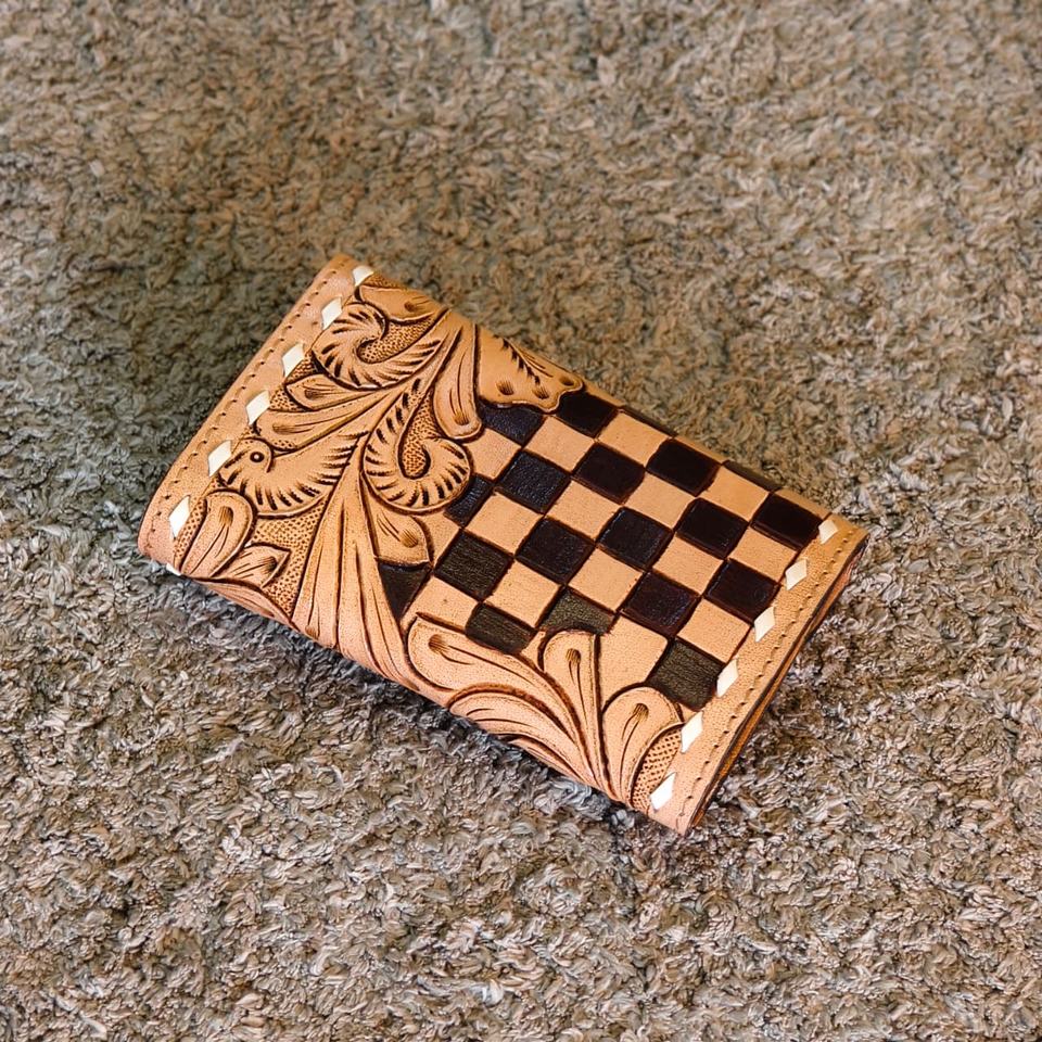 กระเป๋าใส่บัตรลายตารางหนังแท้ขนาดมินิ 100% พร้อมคลิปหนีบเงิน สำหรับใส่บัตรเครดิตและกุญแจ