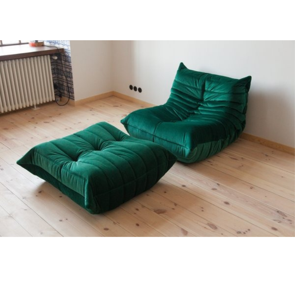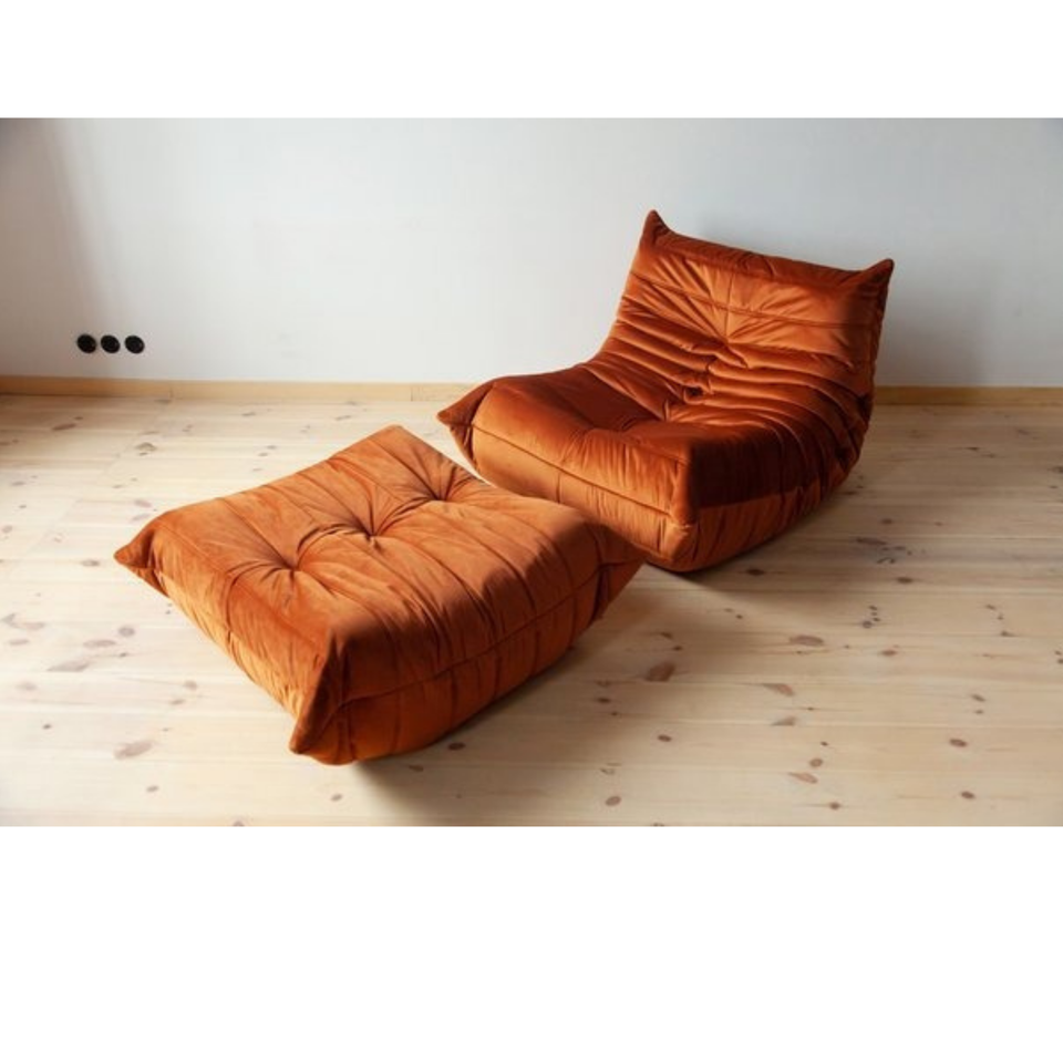 ชุดโซฟาพักผ่อนแบบเตี้ย | โซฟาผ้าสีส้มแบบโมเดิร์นทรงทัฟท์พร้อมออตโตมัน | ฟองน้ำโฮร์ติคลับ เนื้อนุ่ม สบาย