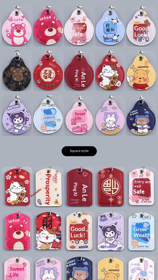 ปลอกป้องกันบัตรควบคุมการเข้าออก NFC ลายแมวนำโชคทรงสี่เหลี่ยมจัตุรัสขนาดเล็ก พร้อมสายคล้องกุญแจแบบถัก สำหรับบ้านเช่า รถยนต์ไฟฟ้า