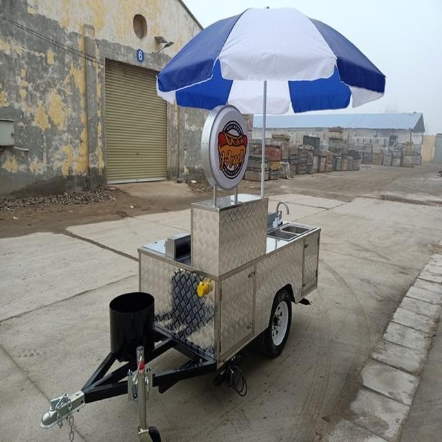 รถเข็นอาหารสแตนเลสขนาดเล็กพร้อมตะแกรงและเครื่องทอดสำหรับสุนัขร้อนอาหารว่างอาหารจานด่วนและไอศครีมสำหรับโรงบ่มไวน์