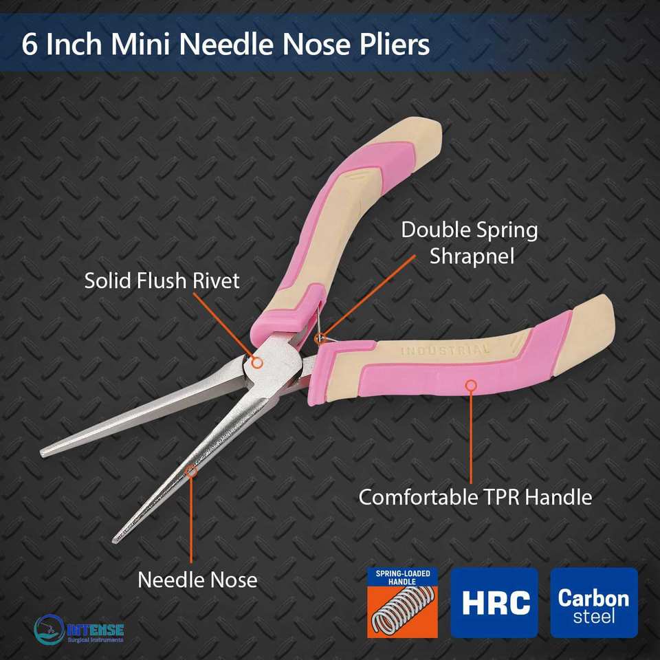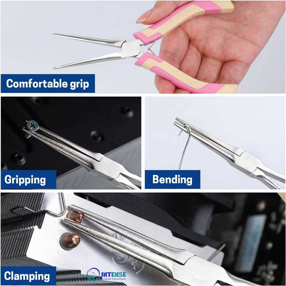 คีมปากแหลมสแตนเลสขนาดเล็ก 6 นิ้ว แบบตรง พร้อมด้ามจับที่สะดวกสบายสำหรับทำเครื่องประดับและพันลวด