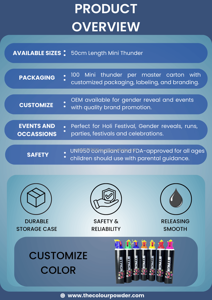 เครื่องยิงลูกบอลสีมินิธันเดอร์ | เครื่องยิงผงขนาดกะทัดรัดทรงพลังสำหรับเทศกาลต่างๆ