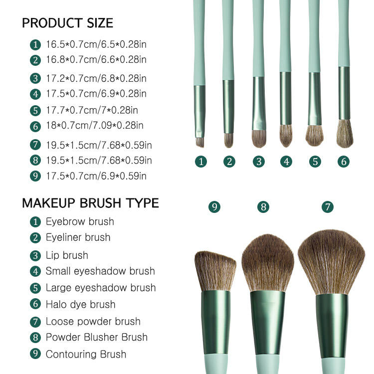 ชุดแปรงแต่งหน้าพกพาขนาดเล็ก 9 ชิ้น ขนแปรงสังเคราะห์ ABS นุ่ม สำหรับแต่งหน้า แปรงคาบูกิ แปรงเขียนคิ้ว แปรงมาสคาร่า แปรงปัดขนตา สีชัด