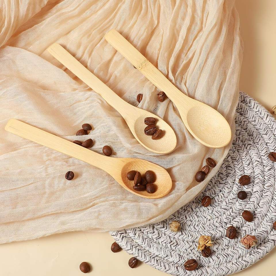 ช้อนชาไม้ขนาดเล็ก รักษ์โลก สไตล์โบฮีเมียน หนา 3 มม. ทำจากไม้ไผ่ ดีไซน์เรียบง่าย