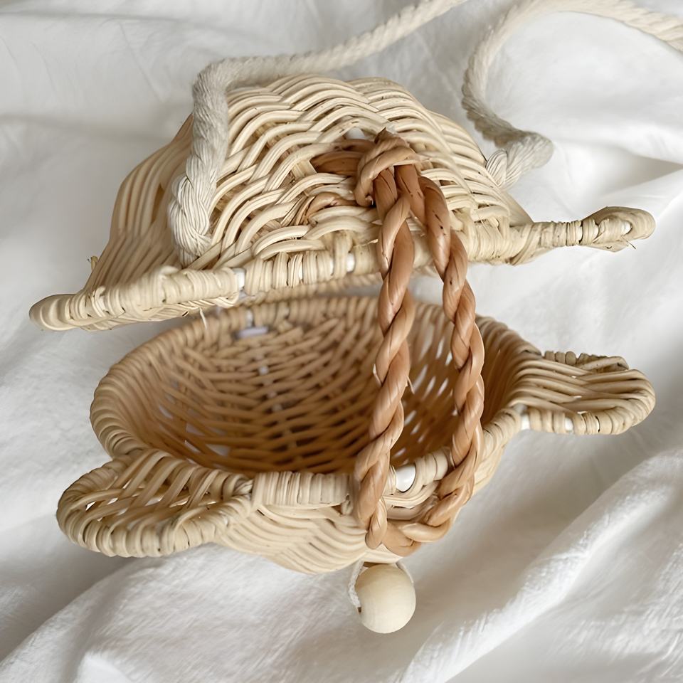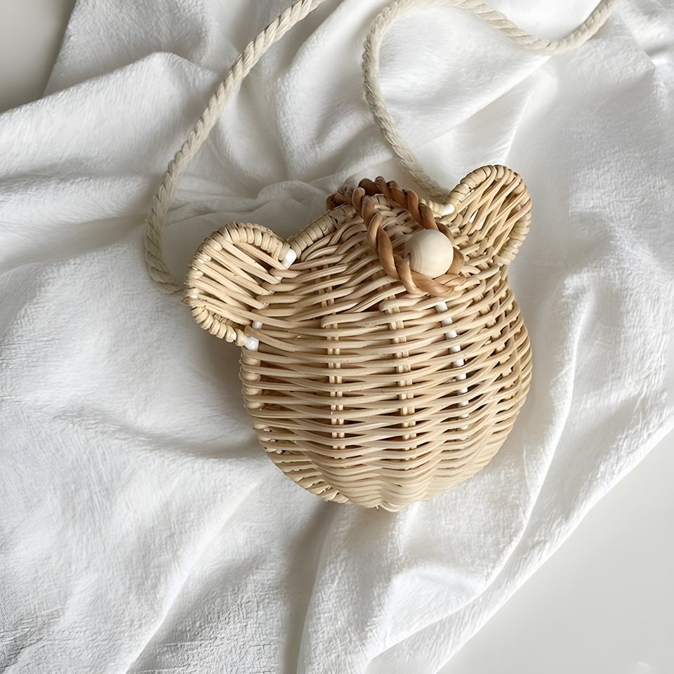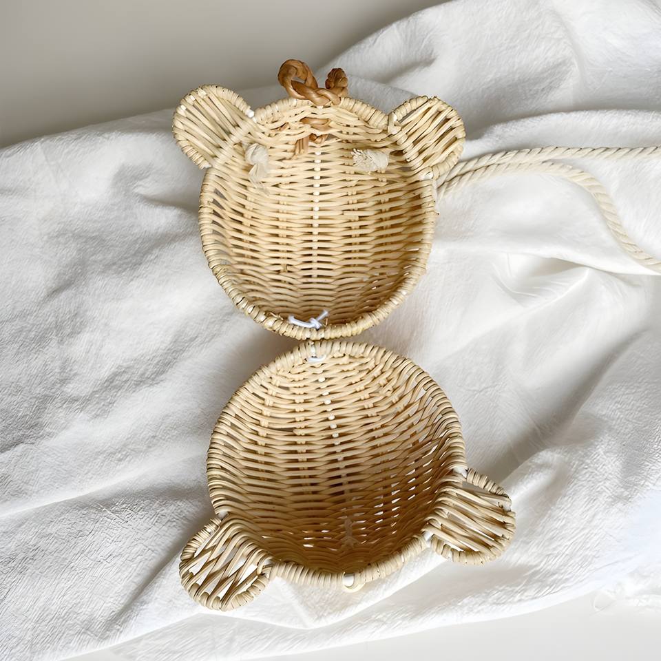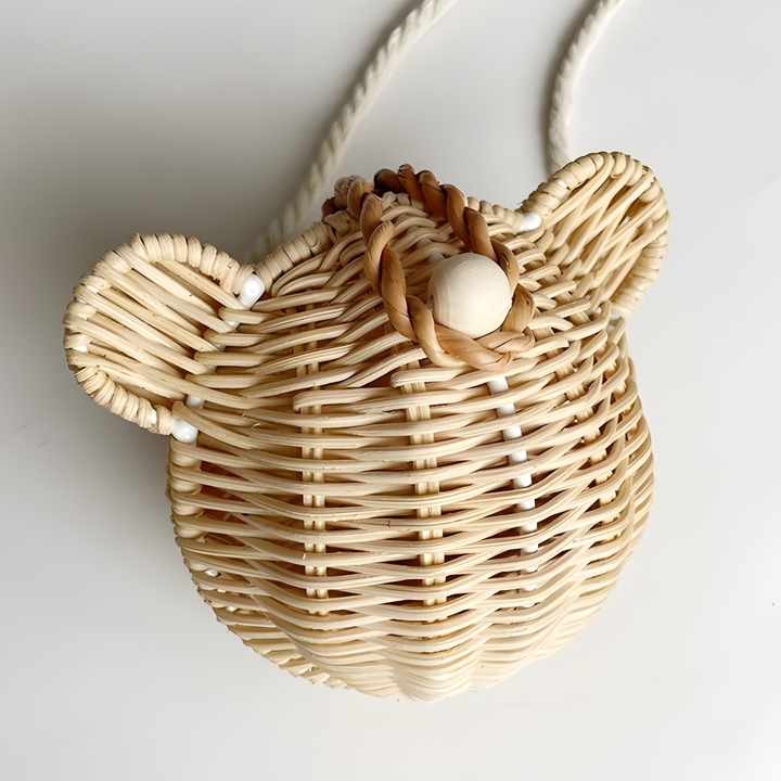 ตะกร้ารูปหมีน้อย ทำจากหวายเวียดนาม กระเป๋าสะพายข้างสำหรับเด็ก ตะกร้าตกแต่งสำหรับเด็กเล็ก