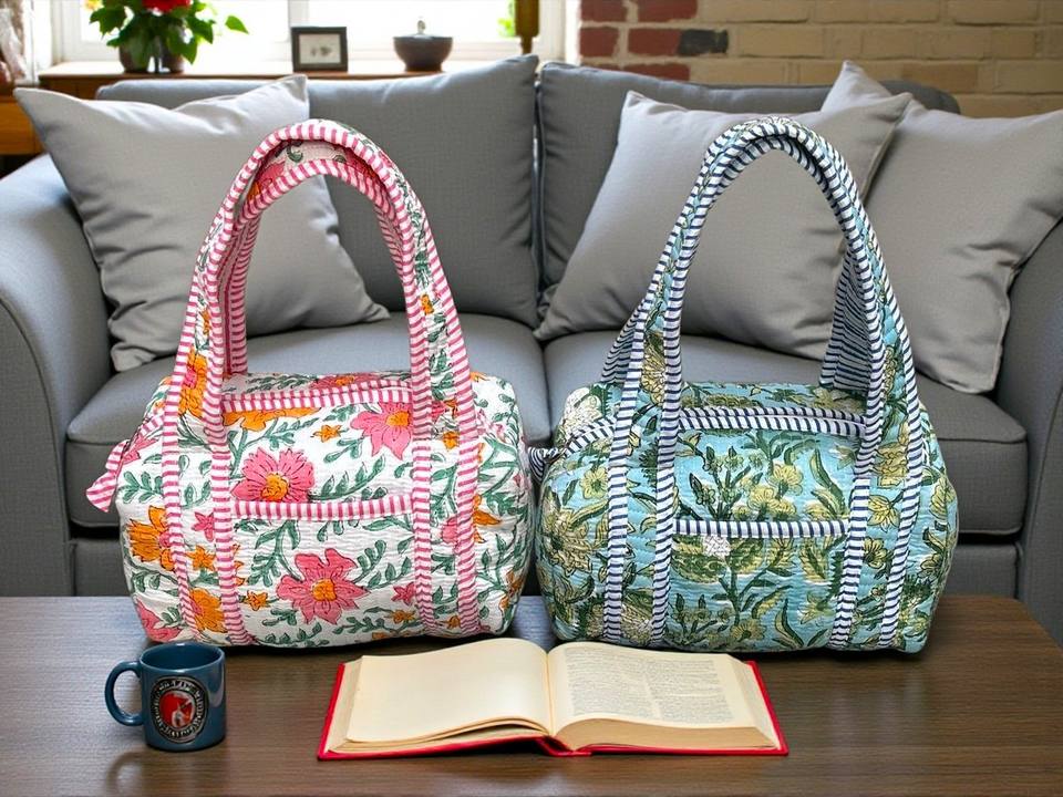 กระเป๋าเดินทางขนาดเล็ก กระเป๋าผ้าฝ้าย กระเป๋าเก็บของ กระเป๋าเดินทางแบบเย็บมือ กระเป๋าพิมพ์ลายบล็อก กระเป๋าสะพายไหล่ขนาดมาตรฐาน กระเป๋าช้อปปิ้งสไตล์โบโฮ