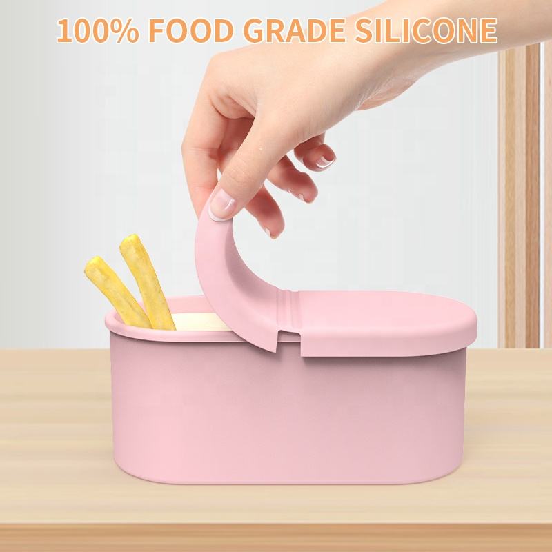 กล่องเก็บอาหารขนาดเล็ก กล่องใส่น้ำสลัดอเนกประสงค์ ป้องกันการรั่วซึม กล่องใส่น้ำสลัดซิลิโคน พร้อมถ้วยจิ้ม