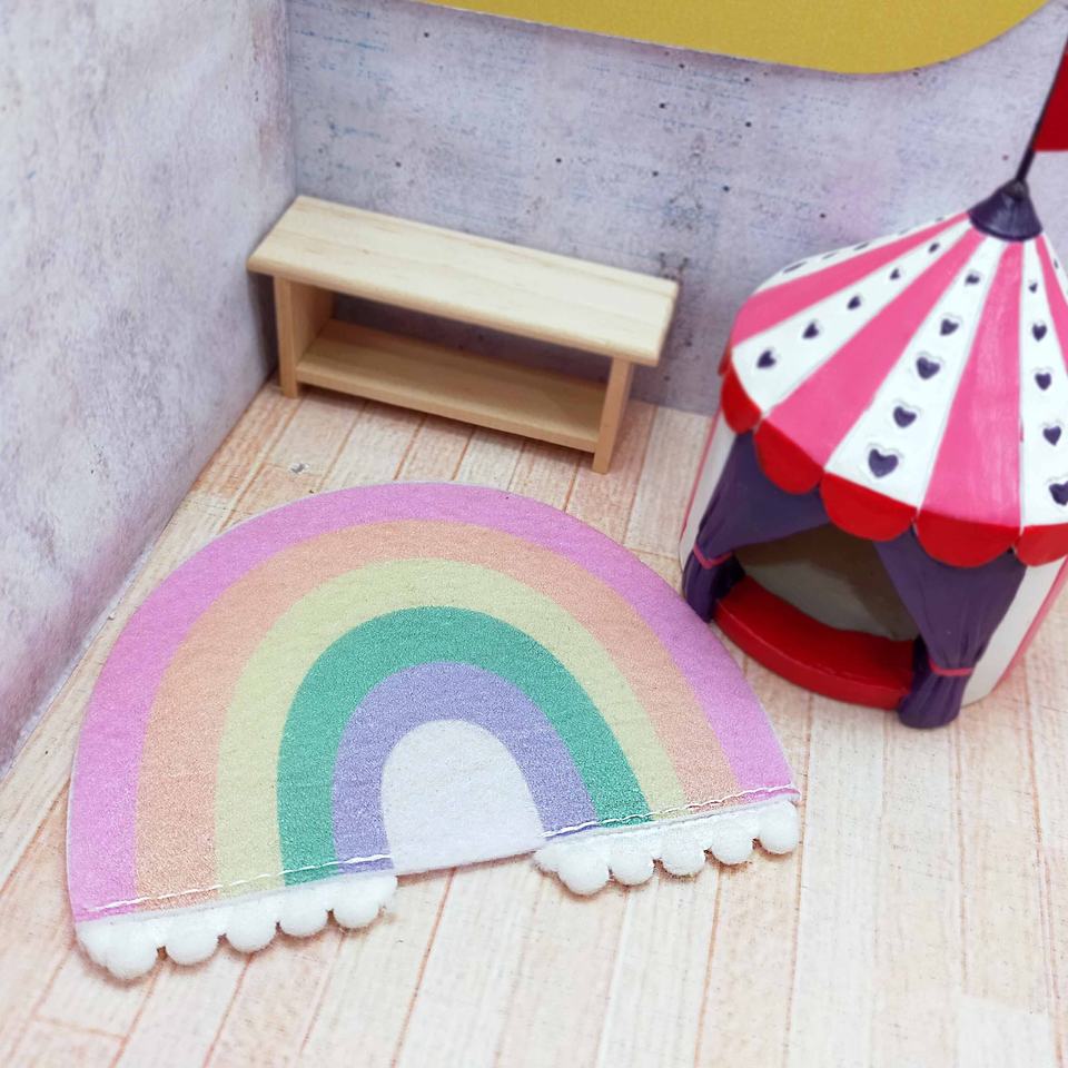 ชื่อผลิตภัณฑ์:บ้านตุ๊กตาขนาดเล็กพรมถักสีรุ้ง1:12
