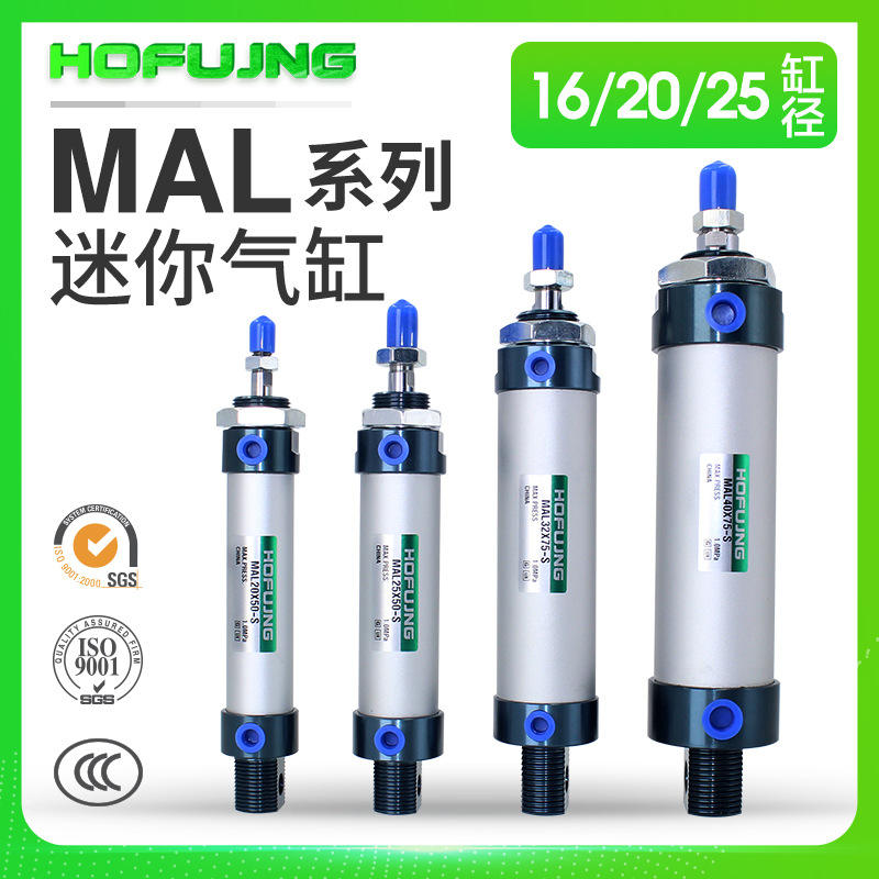 กระบอกลมอลูมิเนียมอัลลอยขนาดเล็ก ไมโครซิลินเดอร์ MAL16/20/25/32/40X25X50X75X100 ใหม่ มือสอง พร้อมไส้กรองสำหรับงานลม