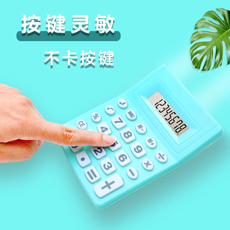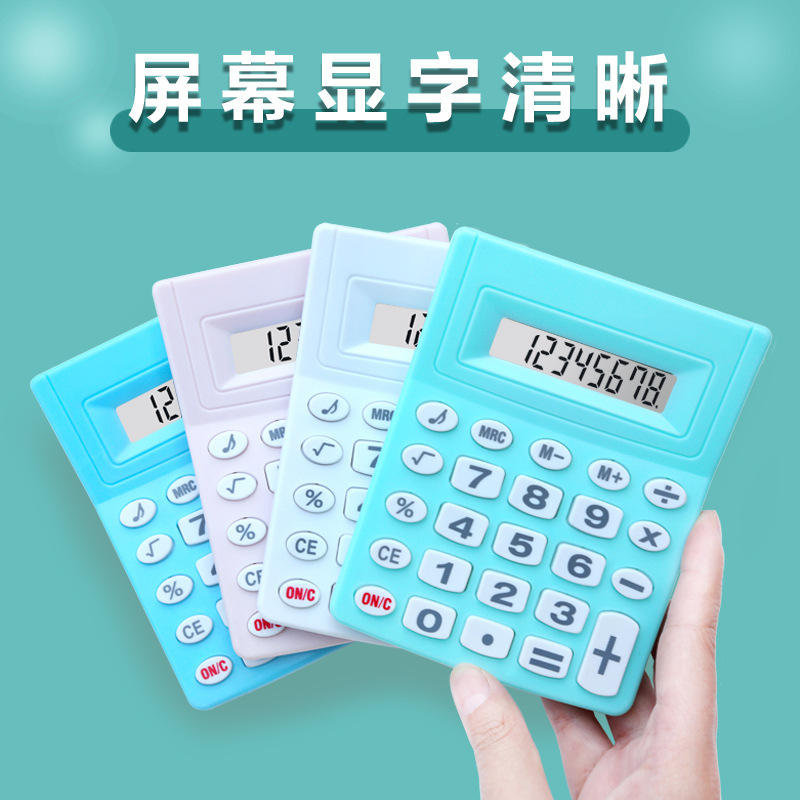 เครื่องคิดเลขสร้างสรรค์ขนาดเล็ก 9.5 ซม. x 12.5 ซม. 8 หลัก เครื่องคิดเลขอิเล็กทรอนิกส์แบบพกพาสำหรับนักเรียน สีชมพู สีขาว สีฟ้า สีเขียว