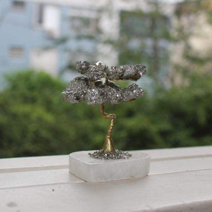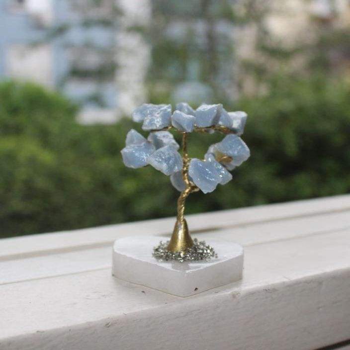 ต้นไม้หินกึ่งมีค่าขนาดเล็กงานฝีมือที่ไม่ซ้ำกัน (angelite, pyrite และ chrysocolla)
