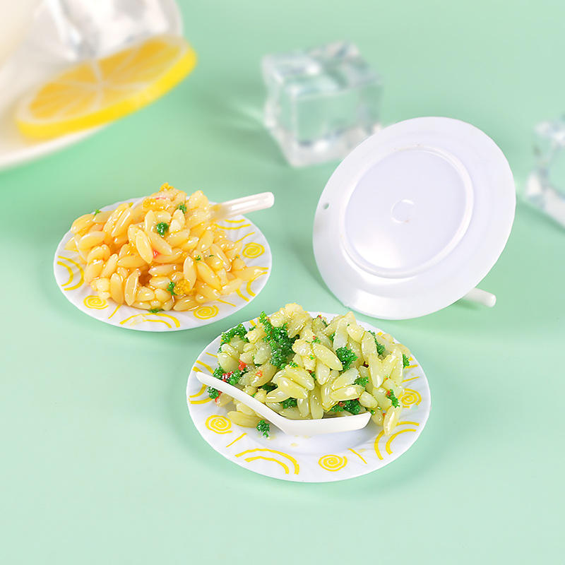 อาหารจำลองขนาดเล็ก ข้าวผัดจำลอง อุปกรณ์ประกอบฉากครัว พวงกุญแจแสนสนุก