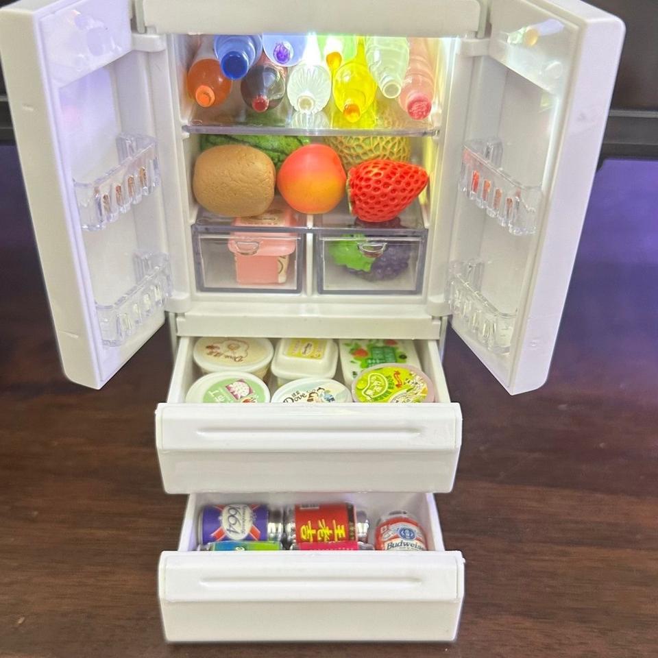 ของจิ๋วพร้อมไฟ 1:12 โมเดลเครื่องใช้ไฟฟ้าในบ้านจิ๋วสำหรับบ้านตุ๊กตา ฉากครัว ตู้แช่แข็ง ตู้เย็น ของเล่นอาหารจิ๋ว