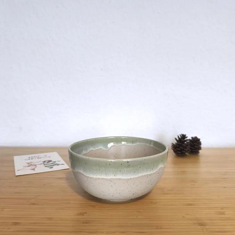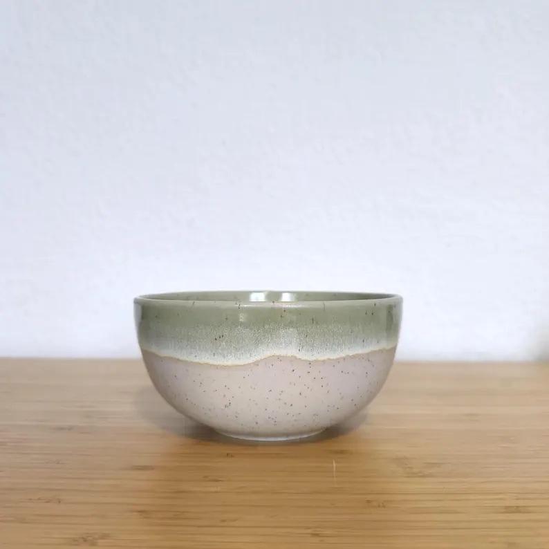 ชามเซรามิกทรงลึก ดีไซน์เรียบง่าย สีเขียวมะกอกเคลือบลายจุด ทนทาน ปลอดภัยสำหรับอาหาร เหมาะสำหรับการรับประทานอาหารในทุกวันในสไตล์โมเดิร์น