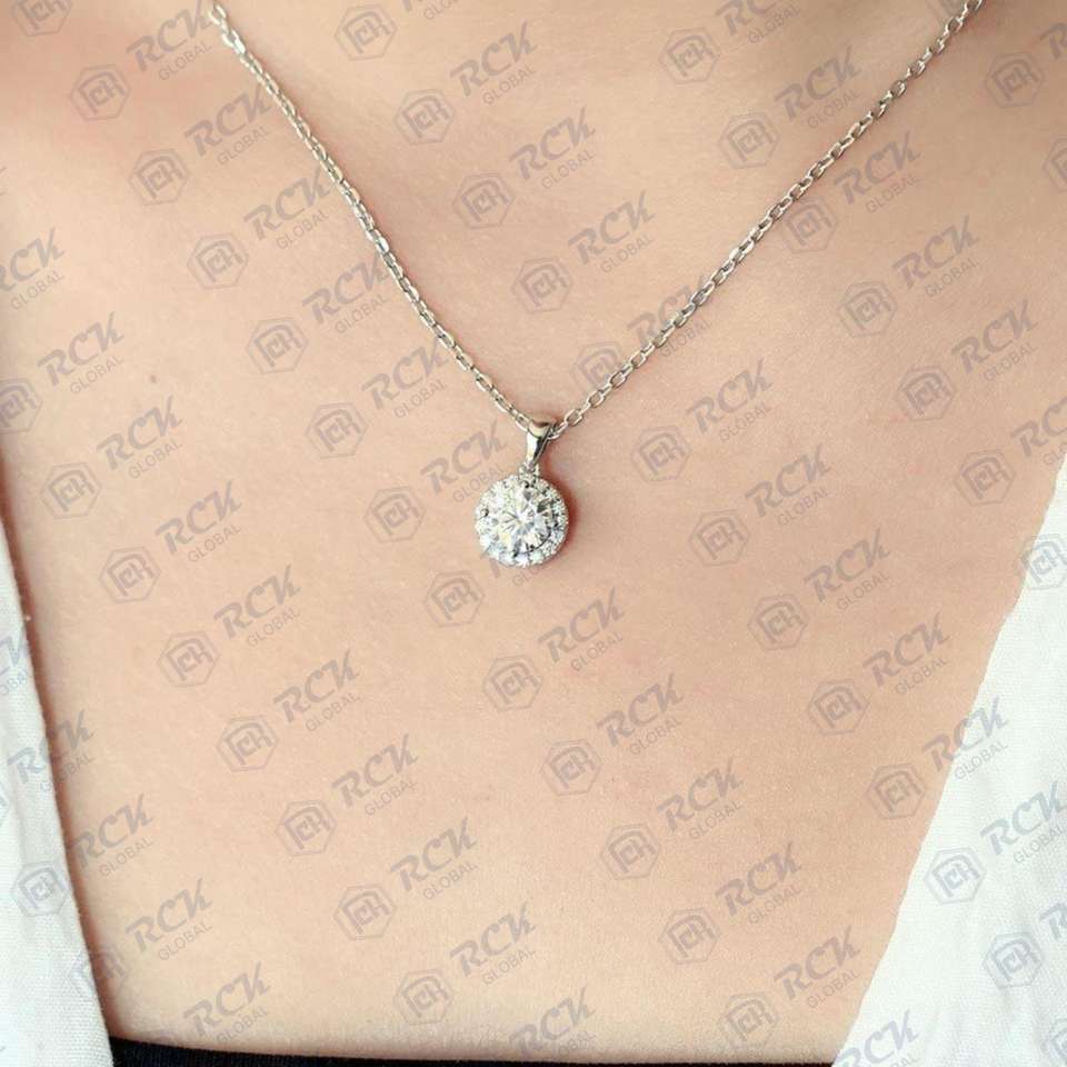 1.10เล็กๆน้อยๆ CTW รอบตัด Halo Moissanite สร้อยคอทองคำขาวจี้สำหรับผู้หญิงของขวัญครบรอบ