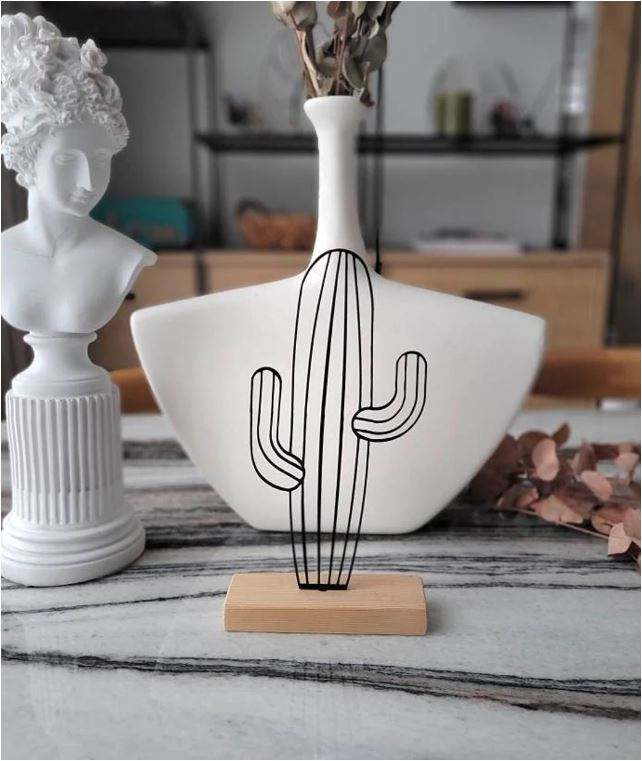 ชั้นวางต้นกระบองเพชรดีไซน์มินิมอล ตกแต่งบ้าน ฐานไม้โลหะสีดำ งานประติมากรรม ของตกแต่งบ้าน ของตกแต่งโต๊ะ โรงแรมหรู ห้องอาหาร